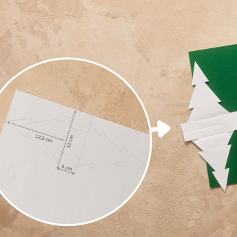 Zeichne eine Tannenbaum-Vorlage auf Papier und übertrage sie auf den grünen Karton.